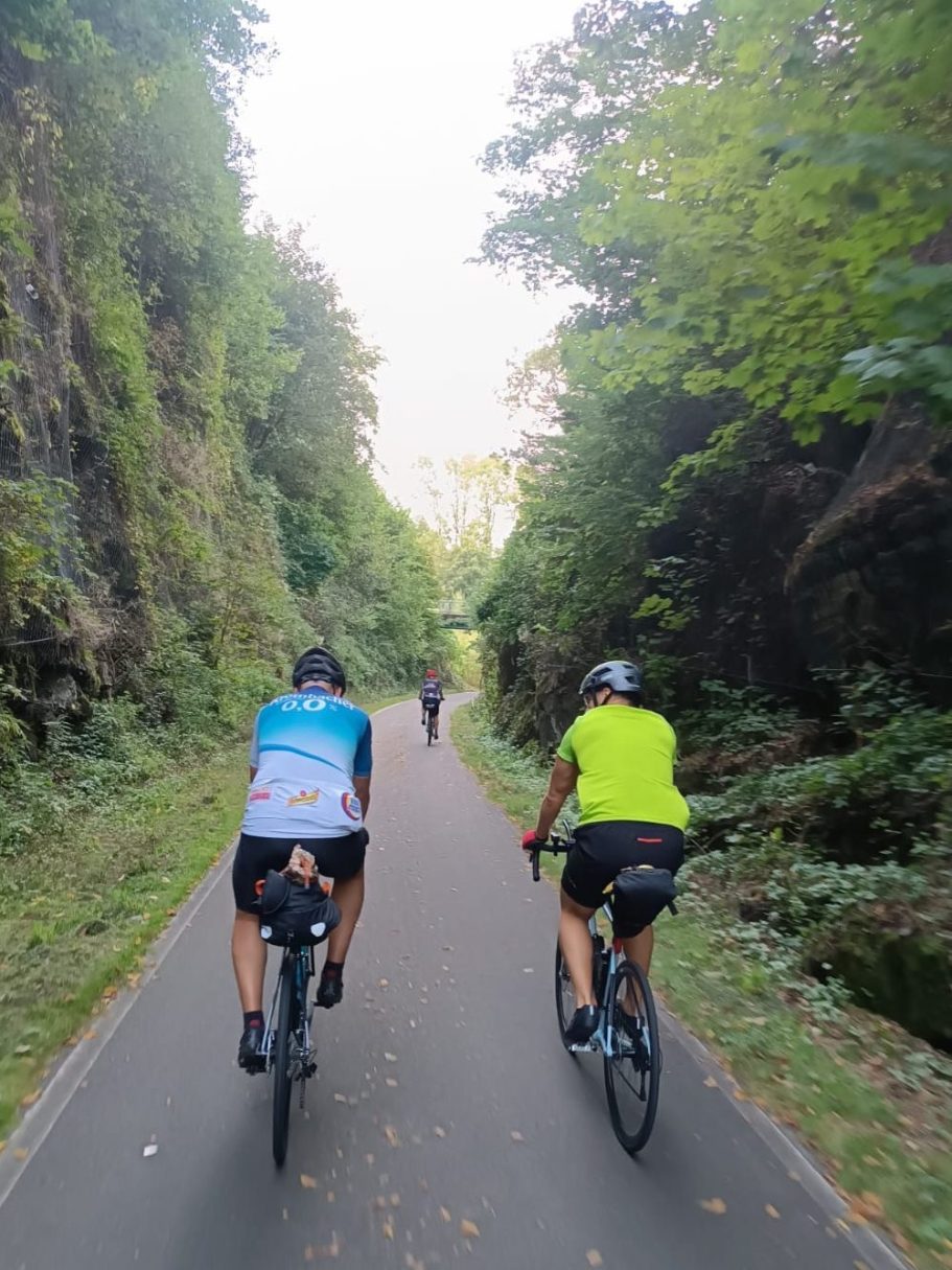 Bereits vom Start weg teilte sich unsere Gruppe in eine schnellere und eine etwas langsamere Gruppe auf. In beiden Gruppen konnten wir unheimlich viel zum Thema 'Fahren im Verband' lernen, andere motivieren und wurden selbst motiviert. Jeder von uns kam mehr oder weniger deutlich an seine Grenzen und konnte diese verschieben. Die schnellere Gruppe kam nach ca. 14 Stunden inklusive Pausen, die langsamere nach 18 Stunden ins lang ersehnte Ziel. Alle 8 Fahrer (!) konnten dort ihre hart verdienten Medaillen in Empfang nehmen, noch etwas essen und trinken sowie sich von den Physios vor Ort durchkneten lassen.